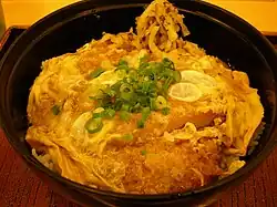 Katsudon Savory Japan Tonkatsu(pork cutlet), egg, and rice in a bowl.