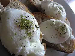 This is a list of notable egg dishes and beverages. Eggs are laid by females of many different species, including birds, reptiles, amphibians, and fish, and have been eaten by humans for thousands of years.[1] Bird and reptile eggs consist of albumen (egg white) and vitellus (egg yolk), contained within many different thin membranes all surrounded by a protective eggshell.