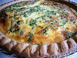 Flæskeæggekage[27][28] Savory Denmark An oven baked or pan fried thick omelette (egg cake) topped with crispy bacon, tomatoes and chives.