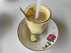 Teh talua Sweet Indonesia A drink consists of tea powder, raw egg, sugar, and citrus.