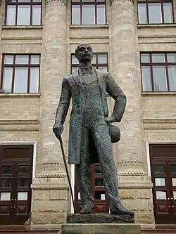 Vasile Alecsandri's statue in front of National Library of Moldova.