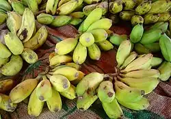 [5] | The Royal Decree states the chicken egg banana is known as Musa aromatica but this is an outdated taxonomic name still used in Cambodia. This cultivar is also known as kluai khai in Thailand which has a similar meaning, that being "Egg Banana." It is known as pisang mas in Malaysia in which they can be found to be synonyms for the Lady's Finger Banana. |