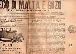 L'Eco di Malta e Gozo Italian 1920s Enrico Mizzi[4]: 22