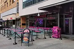 Outdoor restaurant area of the Naughty Brgr restaurant in Oulu