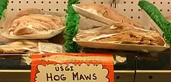 Hog maw The stomach lining of a pig; it is very muscular and contains no fat. As a soul food dish, hog maw has often been coupled with chitterlings, which are pig intestines. In the book Plantation Row Slave Cabin Cooking: The Roots of Soul Food hog maw is used in the Hog Maw Salad recipe.[32]