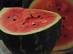 Watermelon Watermelon came from Africa to North America by way of the slave trade. Enslaved African Americans grew them in their gardens for food. Due to their red color, they are eaten during Juneteenth celebrations. The color red represents resilience and joy.[98][99]