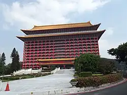 Following the Chinese Civil War, the Republic of China was confined to the island of Taiwan. Taiwanese architects in the late 1940s focused on “de-Japanization” and “re-Sinicization” of Taiwan’s urban landscapes, with new buildings drawing influence from tradtional Chinese architecture, particularly those of the Ming and Qing dynasties.[3] One of the first high-rises to be built in Taipei is the 14-storey main building of the Grand Hotel. Inspired by the Hall of Supreme Harmony in Beijing, it became Taiwan's tallest building upon completion in 1973, at 87 metres tall.[4] From the mid-1970s, commercial high-rise buildings and apartments began to appear, especially on Dunhua Road. Rapid urbanization and economic growth contributed to the growth of taller buildings; the Grand Hotel was overtaken by the First Commercial Bank Building in 1981, then by the Taiwan Power Building in 1983, the first building in Taiwan to exceed 100 m (328), housing the headquarters of the Taiwan Power Company. While the prior two buildings were built in the traditional city centre within Zhongzheng, the next record holder for the city's tallest building, TWTC International Trade Building, would be in the Xinyi Planning District, which had been a planned area for a new central business district since 1976.