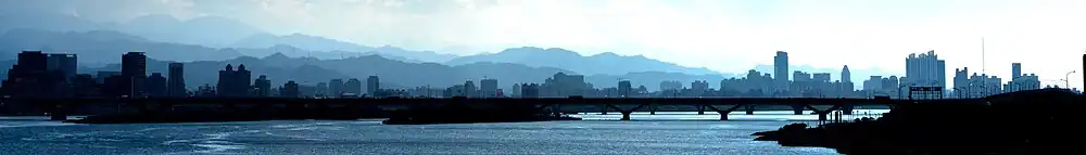 A panoramic view of New Taipei in 2016, across the Tamsui River
