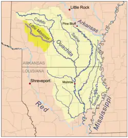 The Little Missouri River, or Little Mo, is a 147-mile-long (237 km)[2] waterway that runs from the Ouachita Mountains of southwest Arkansas into the rolling hills area in the surrounding countryside.
