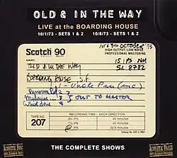 Live at the Boarding House: The Complete Shows is a four-CD live album by the bluegrass band Old & In the Way. It was recorded on October 1 and October 8, 1973, at the Boarding House in San Francisco, and contains the complete concerts from those dates. It was released by Acoustic Disc and Acoustic Oasis on October 1, 2013. The album includes 55 tracks, 14 of which were previously unreleased.[1][2]