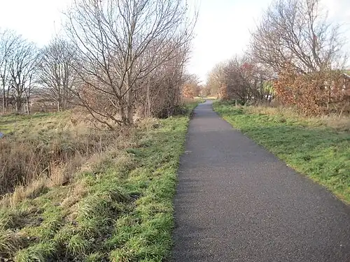 ![]() The site of the station, looking northwest towards Cleckheaton Spen, in 2013 | |||||