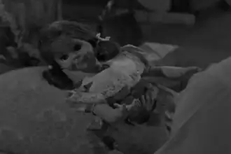 The doll used for Talky Tina was produced by the Vogue Doll Company between 1959 and 1961 and marketed under the name "Brikette".[2] In reality, Brikette was a non-talker; on The Twilight Zone she was modeled after Chatty Cathy, a popular talking doll manufactured by Mattel at the time "Living Doll" aired. The voices for both Chatty Cathy and Talky Tina were provided by June Foray, one of the leading voice actresses of the era.[3]