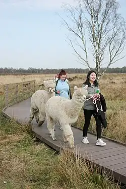 Llama hiking, also known as llama trekking or llama caravanning, is an activity where llamas accompany people on hiking and walking trips, including eco-tourism. Expeditions can last from as little as a few hours to several days. For longer trips the llamas often carry up to three days trekking supplies or cargo in purpose-built pack saddles so the people with them can carry as little as a day backpack.[1] Treks are also offered, accompanied by the closely related alpaca.[2]