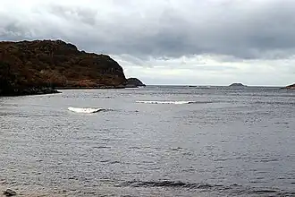 The small island of Sgeir Mhòr is located close to the southern coast of the bay.