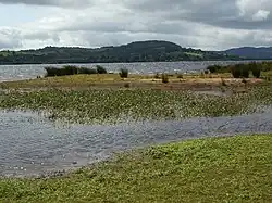There are several different habitats present on the reserve. The islands, and the northern part of the mainland section consist of Atlantic oakwoods, a type of woodland found along the Atlantic fringe of Europe in areas with high rainfall. These woods consist predominantly of oak trees, but other species such as ash, elm and alder are also found. Atlantic oakwoods are characterised by their lichens and mosses, which thrive in the damp conditions, and support many species of plants and birds.[8] The makeup of woodland on each island, and on the mainland section, differs slightly, adding to the diversity of habitats at Loch Lomond NNR.[9] Much of the mainland section of the reserve is the flood plain of the Endrick Water, and so consists of wetland habitats such as swamp, mire, fen, marsh, reed bed, wet woodland and wet meadow. Unlike many other European rivers the Endrick has not undergone drainage or flood defence schemes: this considered to be a key factor underpinning the importance of the site from a nature conservation point of view.[9]