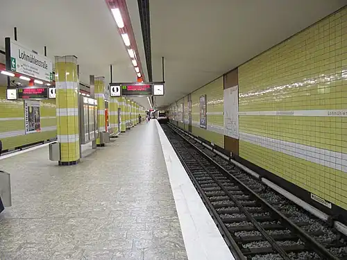 Lohmühlenstraße (German pronunciation: [loːˈmyːlɛnʃtʁaːsə]) is a public transport metro station for the rapid transit trains on the line U1 located in Hamburg, Germany in the quarter St. Georg in the Hamburg-Mitte borough.