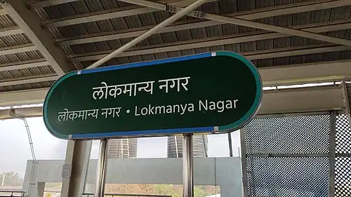 Lokmanya Nagar is the elevated western terminal metro station on the east–west corridor of the Aqua Line of Nagpur Metro in Nagpur, India. The metro station became operational on 28 January 2020.[1]