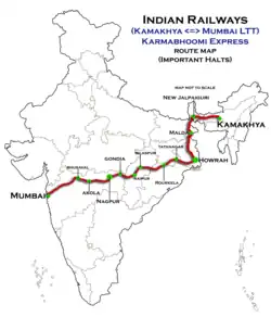 The 22511 / 22512 Mumbai LTT–Kamakhya Karmabhoomi Express is a Superfast Express train belonging to the Northeast Frontier Zone of Indian Railways that runs between Lokmanya Tilak Terminus (Mumbai, Maharashtra) and Kamakhya Junction (Guwahati, Assam).[1]