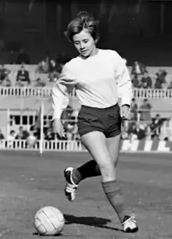 Ortiz, who had been a handball player at Lycée Français de Barcelone,[4] saw the advertisement for a Barcelona women's football team and wanted to try out because of the draw of representing Barcelona.[5] She joined when the team was first created in 1970, playing in the first match on Christmas Day that year. Ortiz helped promote the team and the match in the press beforehand.[6] In Barcelona's inaugural 1971–72 league season, she was the team's top goalscorer, with 26 goals.[7]