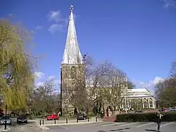 St Mary's Church has a 13th-century lead-covered timber spire similar in design to Chesterfield Parish Church's twisted spire, but Long Sutton's is straight. The church is a Grade I listed building.[24] The spire is 149 feet (45 metres) high.[25]