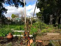Evidence of the roots of the name Temescal remain in the Longfellow neighborhood. Temescal Community Garden, the first community garden in Oakland, was established on 47th Street in 1984 and falls within Longfellow’s borders.[3] Temescal Creek, now culverted, runs beneath the rear property line of the garden and ostensibly acts as the physical geography that defines the northern edge of the Longfellow neighborhood.