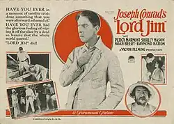 Lord Jim is a 1925 American silent drama film starring Percy Marmont (in the title role), Noah Beery, and Duke Kahanamoku. The film was directed by Victor Fleming and based on the 1900 novel Lord Jim by Joseph Conrad.[1][2]
