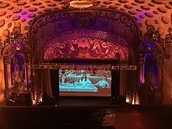 The Los Angeles is used most often today as a location for filming, and is frequently seen in commercials, television shows, and feature films. It has been featured in Funny Lady (1975); New York, New York (1977); Gattaca (1997); Man on the Moon (1999); Charlie's Angels (2000) and its sequel, Charlie's Angels: Full Throttle (2003); The Lords of Salem (2012); the AMC series Mad Men; among many other films. The theatre was used in the back drop on the set of The Tonight Show with Jay Leno, and seen in the music video for "Spiderwebs" by No Doubt, "Heartbreaker" by Mariah Carey (1999), "Jaded" by Aerosmith (2000), "Shake It" by Metro Station (2008), "Moves Like Jagger" by Maroon 5 and Christina Aguilera (2011), "Safe and Sound" by Capital Cities" (2013), "Delicate" by Taylor Swift (2018), "Black Swan" by BTS[12] (2020), "2U" by Kang Daniel (2020), "Ghost Story" by Carrie Underwood (2022) and "Middle of the Night" by Elley Duhé (2022). In 2004, the theatre housed the multi layered theatre production "Alma" (about Alma Mahler-Werfel) by Joshua Sobol, directed by Paulus Manker.