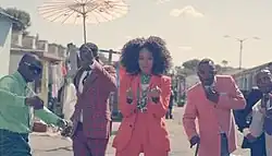 Styled by Ty Hunter and selected by Elle South Africa fashion director Asanda Sizaniwas,[23] Knowles wears fashion by Suno, Kenzo, Diane von Fürstenberg, Opening Ceremony, and J. Crew in the visuals.[24] In the video, Knowles dances and sings in people's kitchens, barbershops and a tailoring shop, takes a 15-seater taxi, rides a bike around a neighborhood, and swims in a community pool.[22] Designer Lizzy Okpo, one half of the William Okpo clothing line and a close friend of Knowles, makes a short appearance in the video.[25][26] Tamagni reportedly guided the crew while filming.[21] The full music video premiered on October 1, 2012 on Pitchfork.[21] The video interprets the diasporic influence of Europe within Africa, by placing images of union jacks – among other references – throughout the treatment.[27]