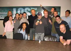 From left to right: Dawn Kelly, Rachel Mellon, Jennifer Johnson, Fletcher, Kitsis, Monica Macer, Cuse, Lindelof, Fury, Grillo-Marxuach, Dick, Adam Horowitz, Matt Ragghianti, and Dini