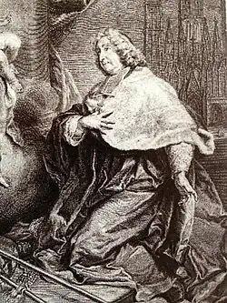 Louis de La Vergne de Tressan received a licence in theology from the University of Paris.[2] He was Count of Lyon and Canon of the Saint John the Baptist Lyon Cathedral, then First Almoner of Philippe I, Duke of Orléans.[3] In this capacity he advocated renewed persecution of Huguenots, which became law under Louis Henri, Duke of Bourbon.