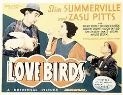 Love Birds is a 1934 American pre-Code comedy film directed by William A. Seiter and written by Doris Anderson, Henry Myers, and Tom Reed. The film stars Slim Summerville, ZaSu Pitts, Mickey Rooney, Frederick Burton, Emmett Vogan, and Dorothy Christy.[1][2][3] The film was released on May 4, 1934, by Universal Pictures.
