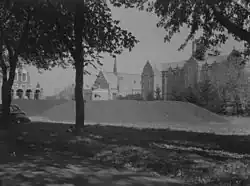 The college moved into the present west-end campus on Sherbrooke Street West in Notre-Dame-de-Grâce in 1916. Frank Peden (architect) with Walter J. Murray designed several Loyola College buildings: Administration Building (1913–16), Junior Building (1913–16), dormitories (1913–16) and refectory (1913-16).[3] The construction was done by Anglin-Norcross Ltd. of Montréal.[4] War memorial bronze plaques in the entrance hall are honour rolls dedicated to those from Loyola College who fought in the First and Second World Wars and the Korean War.[5]