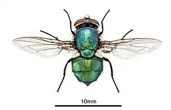 - ^ Picard, C. J.; Wells, J. D.; Ullyot, A.; Rognes, K. (2018). "Amplified fragment length polymorphism analysis supports the valid separate species status of Lucilia caesar and L. illustris (Diptera: Calliphoridae)". Forensic Sciences Research. 3 (1): 60–64. doi:10.1080/20961790.2017.1398286. PMC 6197086.