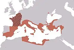 In 50 the Senate, led by Pompey, ordered populist politician and general Julius Caesar to disband his army and return to Rome because his term as governor had ended.[10] Caesar thought he would be prosecuted if he entered Rome without the immunity enjoyed by a magistrate. Torquatus was elected praetor (commander of a field army) for 49 and given command of six cohorts.[11] On 10 January 49 Caesar crossed the Rubicon river, the boundary of Italy, and ignited Caesar's Civil War. He marched rapidly on Rome and captured it. Pompey, the boni and most of the Senate fled to Greece. Torquatus' soldiers went over to Caesar, but he decided to oppose Caesar and joined Pompey. The following year was appointed propraetor (military governor).[12]