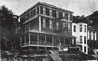 In 1890, Ephraim Nash, was so moved with interest in the deaconess work that he determined to give his own residence at 1140 North Capitol street, to the Woman's Home Missionary Society as a National Training School. It occupies high ground, with much open space about it, commanding extensive views of the city. Lines of street railway are near it, which make all parts of the city accessible. The property of the institution consists of a large building used for all purposes by the training school, and the Sibley Memorial Hospital immediately contiguous to it, a narrow passageway alone separating the rear of the buildings. The home was enlarged and beautified, and was formally dedicated in October, 1891.[1]