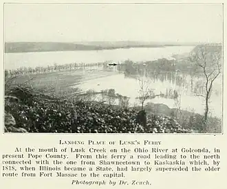 Lusk's Ferry was a terminus of the Lusk's Ferry Road, an early overland route connecting the Ohio River with Fort Kaskaskia. In his conquest of Illinois in 1778, George Rogers Clark crossed the Ohio River at Fort Massac. He then marched north a short distance to the Lusk's Ferry Road, and from there to Fort Kaskaskia.