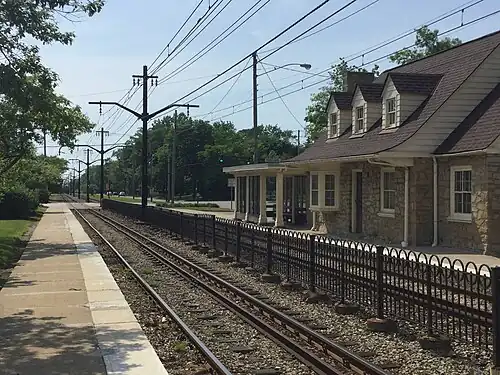 ![]() Lynnfield station platforms with station building on the westbound platform in May 2018 | |||||||||||