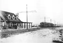 The station opened on April 11, 1920, with the initiation of rail service by the Cleveland Interurban Railroad on what is now Van Aken Boulevard from here to Shaker Square and then to East 34th Street and via surface streets to downtown.[3]: 22 At the time, Lynnfield was the end of the line. In 1923 the station building was built at a cost of $17,926 to provide a waiting room for passengers. It also housed tobacco and newspaper stands. The newspapers were delivered to the station by rapid transit.[3]: 41 The building included outside shelters on both sides.