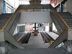 The station interior, with platforms. The preserved horse tram can be seen on the upper level.