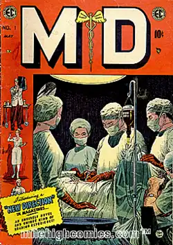 M.D. was a short lived comic book published by EC Comics in 1955, the sixth title in its New Direction line. The bi-monthly comic was published by Bill Gaines and edited by Al Feldstein. It lasted a total of five issues before being cancelled along with EC's other New Direction comics.