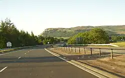 The Kinross and Milnathort Bypass, the 8-mile (13 km) section of the M90 between Fruix and Arlary, was the first motorway in Britain to be constructed using concrete pavements that were not reinforced.[10] Both the south- and north-bound carriageways have since been overlaid by tarmac.