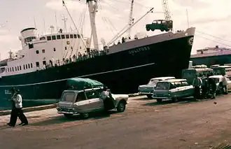 During the 1950s and 1960s Gullfoss ran fortnightly in summer on the Copenhagen-Edinburgh/Leith-Reykjavik route and three-weekly in winter via Hamburg, West Germany. In winter she sometimes also became a cruise ship. In 1950 and 1951, Compagnie Générale Transatlantique chartered her for service from Bordeaux, France, to Casablanca, French Morocco. In 1953 she was in the Mediterranean and in 1967 she cruised from Iceland to the Azores, Madeira, Casablanca, and Lisbon. Several cruises went to Amsterdam and London and around Iceland.