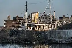 In February 2014 she was moved by Waterways Ireland to the Grand Canal Docks' graving dock for deconstruction,[8] but the break-up was postponed due to public opposition and eventually dropped as a plan materialized to convert her to a tourist attraction in her original home Port of Galway.[9][1] In 2014, she was the subject of a TV documentary directed by Donncha Mac Con Iomaire on TG4.[10]