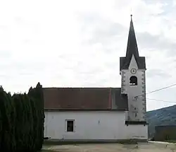 The local church is dedicated to Saint John the Evangelist and belongs to the Parish of Žužemberk. It is a medieval building that was restyled in the Baroque style in the 18th century.[6]