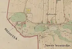 The land which belonged to the wójt stretched as far as today's przysiółek Okrągła. The name of the Winnica hill, where grapes were grown, appears in documents. Stanaszek identifies it with the hill that separates the Brzostek neighborhood on Gryglewskiego Street from the stadium on Okrągła Street.[4] The expansion of Maly Brzostek was meant to go east, through the then-forested valley of the Słony stream, towards Wola Brzostecka. This village was the closest settlement from this side, and appears in the sources for the first time in the 15th century. In 1407, the sołtys of Wola Brzostecka was the wójt of Mały Brzostek.[4]