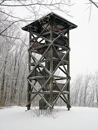 Just under 400 metres north of the Mackenröder Spitze and about 1.6 kilometres northwest of Mackenrode stands the Harzblick observation tower at a height of 425 metres. The tower used to stand next to the forest inn at the summit of the Mackenröder Spitze, but due to the construction of a military base in the 1970s it was moved to its present location.