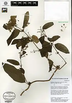 Madagasikaria is a genus in the Malpighiaceae, a family of about 75 genera of flowering plants in the order Malpighiales. Madagasikaria contains only one species (Madagasikaria andersonii) of woody vine native to deciduous seasonally dry forest of Madagascar.