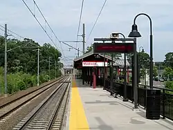 In 1896, the original station was replaced by a saltbox station of a standard New Haven design, located slightly to the west. The older station was moved for use as a freight house.[6] A small wooden westbound shelter, similar to other Shore Line stops east of New Haven, was added in the 1950s.[6]