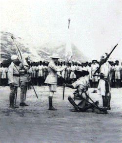 - World War I (1914–1918) – The 63rd took part in the East African campaign, while the 75th was stationed in Aden. The 73rd, 79th, 80th, 83rd (WLI) and the 88th took part in the Mesopotamian campaign. The Regiment was awarded the Battle Honours 'Kilimanjaro', 'East Africa 1914-16', 'Kut-al-Amara', 'Baghdad', 'Mesopotamia 1915-18', 'Aden', 'Persia 1918', NW Frontier India 1914-15 ; 1917' and 'Baluchistan 1918'.[28]