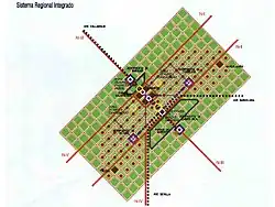 - The Urban layer (scale 1:5,000), which constituted the ‘fabric’ of the metropolitan system and was conformed according to an urban location model called the BUD (Balanced Urban Development - Unidad de Desarrollo Equilibrado)